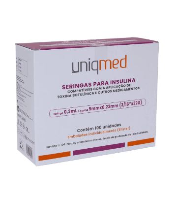 SERINGA INSULINA 1ML AGULHA 5MMX0.23MM -32G (BLISTER) 100 UND CX -UNIQMED quantidade