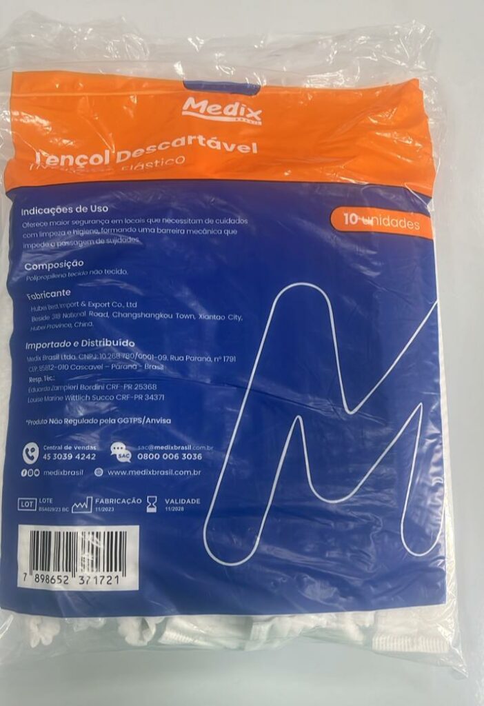 LENÇOL DESCARTAVEL TNT ELASTICO BRANCO 2,00X 0,90 CM 10 UND- 16G MEDIX quantidade