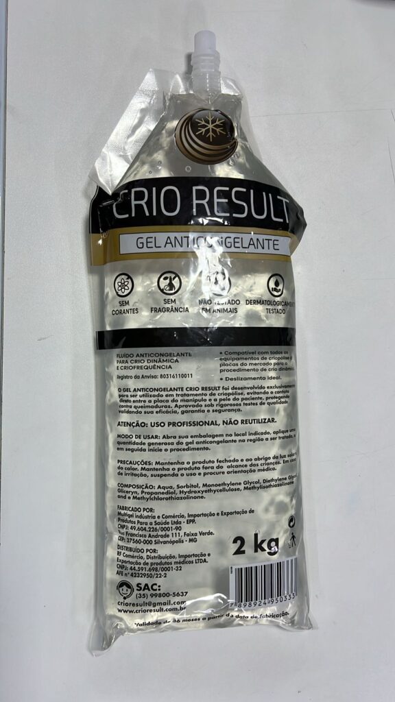 GEL ANTICONGELANTE PARA CRIOLIPOLISE 2KG |BAG CRIO RESULT quantidade