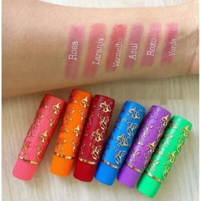 Ele é conhecido como “Batom Mágico 24h” por ser colorido e nos lábios ficar uma cor rosadinha,