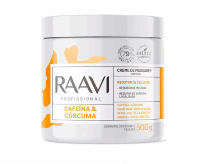 CREME DE MASSAGEM CORPORAL CAFEINA E CURCUMA 500G – RAAVI