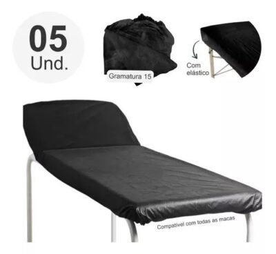 Lençol Descartável Maca Com Elástico 2m X 90cm Cor Preto – 5 Unidades Santa Clara