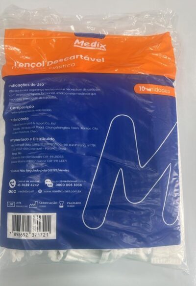 Descartável, é inteiramente confeccionado em tecido não tecido (TNT) 100% polipropileno, possui elástico,