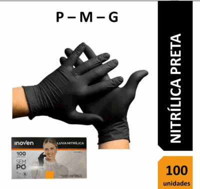 Descrição: Produzida em nitrilo, a Luva Nitrílica preta da INOVEN é destinada para a segurança e proteção durante procedimentos.