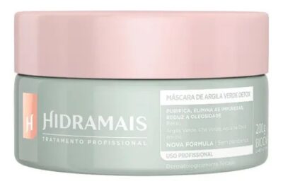 A Máscara de Argila Verde Detox Hidramais auxilia no tratamento de peles oleosas, acneicas e mistas.