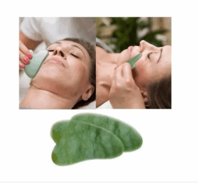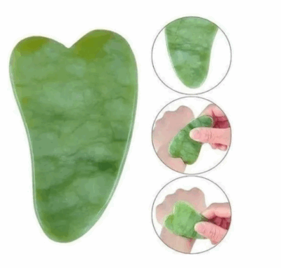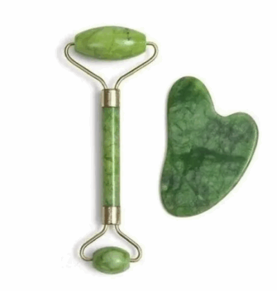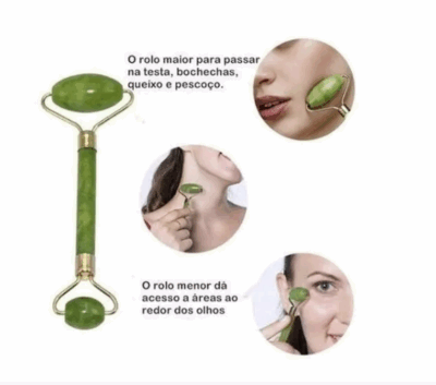 Rolo Massageador Roller Pedra Jade + Placa Gua Sha Massagem Facial