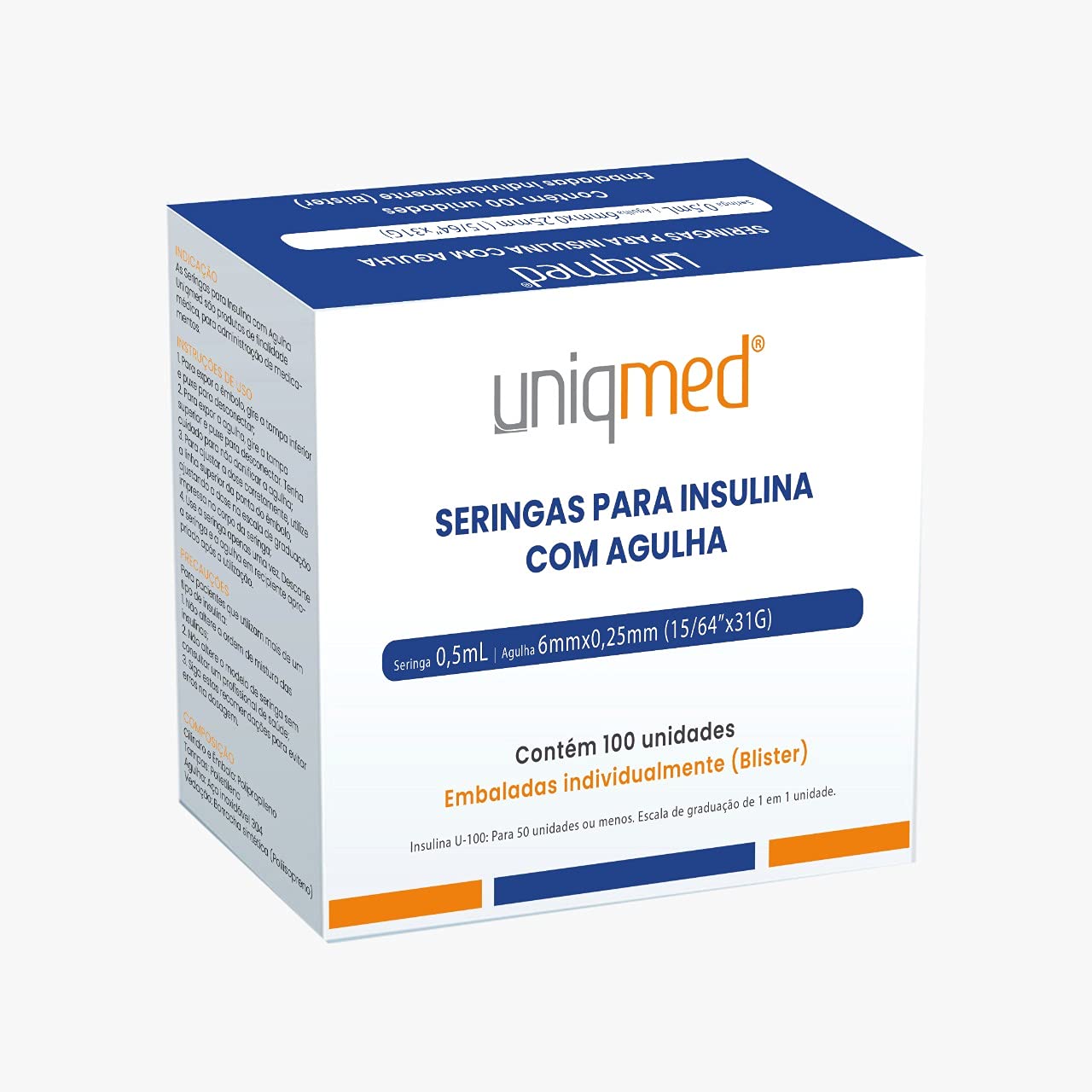SERINGA INSULINA 0,5ML 6MMX0,25MM 31G 100 UND-C5195-UNIQMED